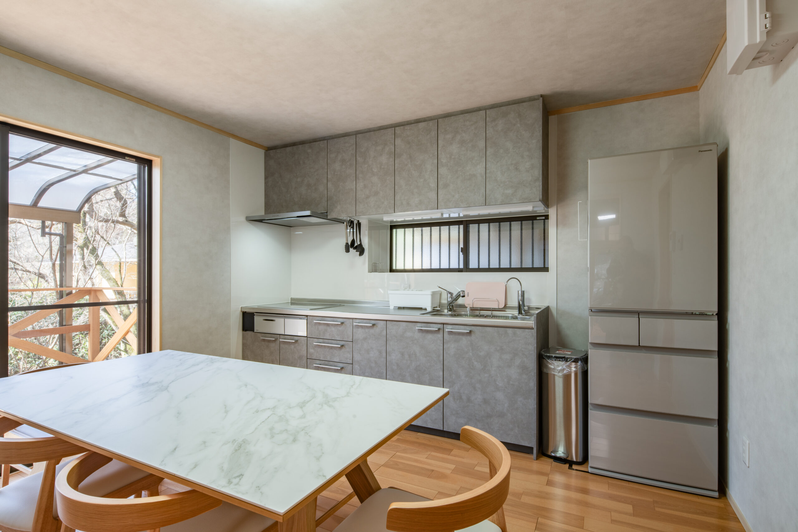 館内には事前予約制のレストランがあり、旬の食材を使ったお料理をお楽しみいただけます。自炊または外食、どちらのスタイルも可能です。